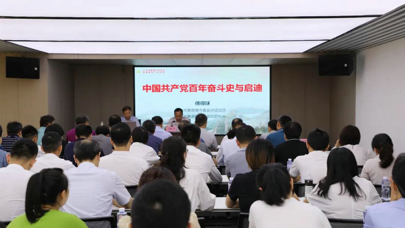 6月15日上午,市國控集團(tuán)邀請市委宣講團(tuán)成員、市委黨校副校長、市行政學(xué)院副院長傅得球同志作黨史學(xué)習(xí)教育專題講座。市國資委黨委委員、副主任、市國控集團(tuán)轉(zhuǎn)型發(fā)展工作領(lǐng)導(dǎo)小組辦公室主任吳雄飛等集團(tuán)領(lǐng)導(dǎo)班子、全體中層干部聆聽講座。